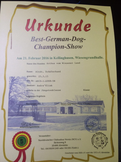 Richterliche Empfehlung : der Rüde muss in die Zucht.